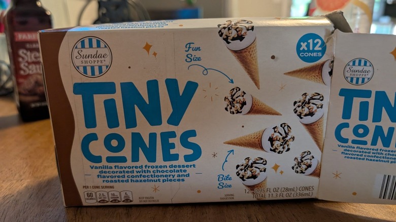 There's also availability to consider. While Trader Joe's freezer section is usually stocked with Hold the Cones, Aldi's Tiny Cones were a short-lived Aldi Find that the company released in June 2025. However, not only does the discount grocer tend to bring Finds back annually (especially if they are popular), but it also sells mini vanilla chocolate-dipped cones as part of its core freezer items.