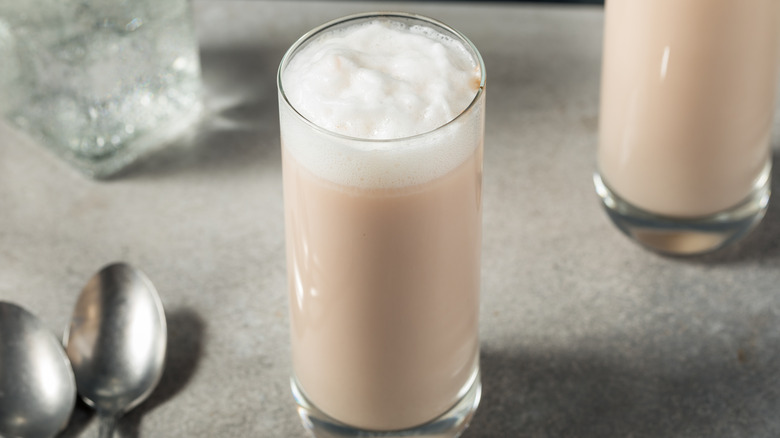 Mention the egg cream — a beverage popular in the New York City area in the first half of the 20th century that contains neither eggs nor cream — and you'll probably bring a nostalgic smile to the faces of anyone over the age of 60 who remembers enjoying them with a Brooklyn- or Lower East Side-born parent. Made with old-fashioned seltzer (the type that came in reusable glass bottles with a metal siphon head), whole milk, and chocolate syrup (preferably Fox's U-Bet, which dissolved well in milk), you can still get egg creams in a handful of places.