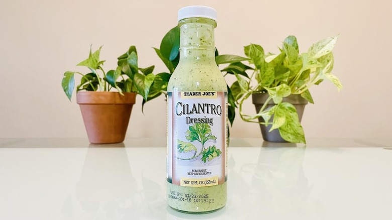 Stroll down any aisle in a Trader Joe's, and you're sure to find a beloved gem on the shelves. In the freezer aisle, you'll find the affordable Apple Blossoms dessert, a twist on a classic treat. In the bread aisle, you can discover quite a few gluten-free staples, like bagels and hamburger buns. And in the condiment aisle, you'll see what is the gold standard for Trader Joe's salad dressings, as decided by Food Republic in its taste test and ranking of all TJ's dressings: the Cilantro Dressing.
