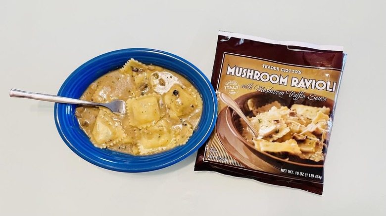 Another food reviewer, sheepieniagara, seemed to stick with the "eh, it's pretty okay" trend of dissenting opinions, essentially acknowledging that it's not terrible but also not great. This mushroom-packed ravioli only has three stars on the Trader Joe's website, too, with complaints ranging from a tasteless and watery sauce to dry and flavorless pasta. The overwhelming emotion is disappointment, so you're better off just skipping the whole circus entirely and enjoying the best frozen pasta at Trader Joe's instead of struggling through a could-have-been-better meal.