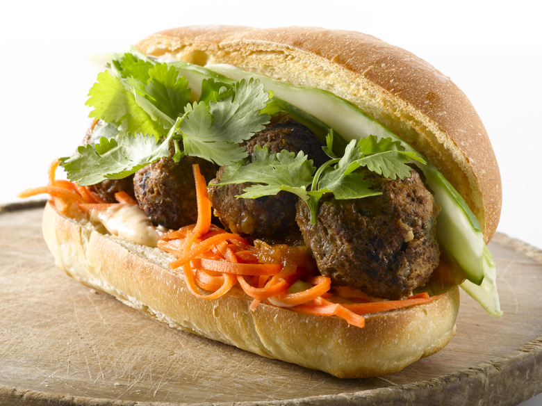 Italian food fans (and Jersey Shore habitués) don't have a monopoly on the meatball sandwich. Our Southeast Asian friends make a damned tasty one too, subbing out gooey mozzarella and tangy tomato for crunchy pickled carrots and spicy chili mayonnaise. That's why Food Republic, where we're always striving for global equality, has chosen this Cambodian version as our inaugural "Sandwich of the Week."
