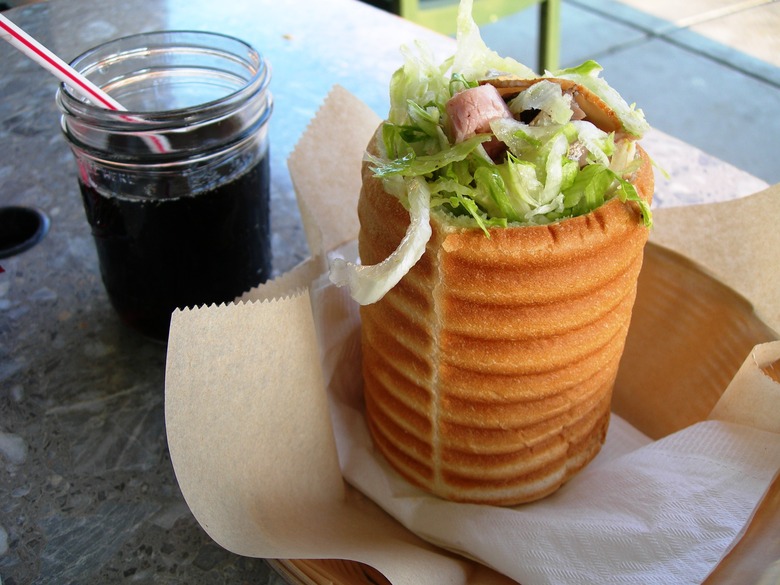 To understand an Ox sandwich, you have to start with the bread. Whether you go with French, whole wheat, dill, or garlic parmesan, it's the physical form of the bread that's unique. Baked in a cylindrical shape and hollowed out by hand (bread guts can also be purchased by the bagful), the Clubfoot is a registered trademark of Staggering Ox, which has locations in Helena, Billings, and Missoula, as well as in Spokane, Washington.