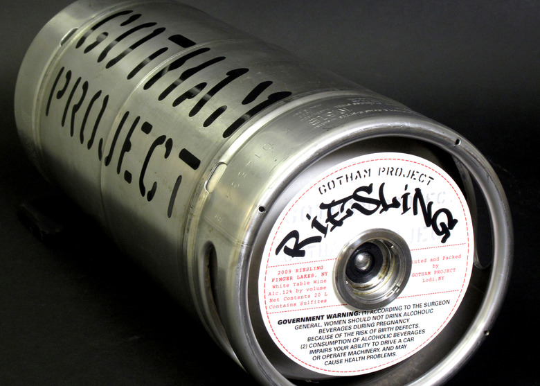 - Keg: You may have started to notice new taps on the bar at your favorite watering hole. These don't dispense beer, alas, but instead pour something even more refreshing: wine from a keg. The Gotham Project is a pioneer in the market, offering German Riesling, Chilean Sauvignon Blanc and Pedro Ximenez, and old-vine Zinfandel from California on tap.