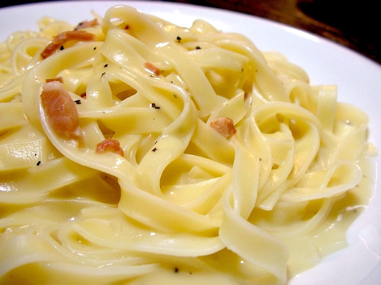 Enter fettuccine alfredo, the unanimous winner of this heated debate. Satisfying starch, tasty fat, maybe a little parsley for good measure. Go ahead, order a round of shots for everyone. It's Thursday happy hour. It'll take more than a whiskey bullet to break through the impenetrable, emulsified barrier formed when butter, cream and Parmesan unite. Protect your innards and integrity with a lining of fettuccine alfredo's creamy concrete, and you'll finish your fun run in excellent shape.