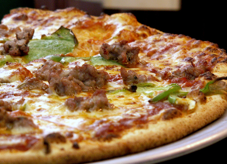 If we had any problem with fat-on-fat-on-carb violence, we would have never featured the grilled macaroni and cheese sandwich as Sandwich of the Week. For this very reason, I've selected today's totally made-up and largely ignored national food holiday for lunch. Sausage pizza. Very random. Does pepperoni fall within the acceptable realm of sausage? Can I have a pepperoni slice today and say I celebrated National Sausage Pizza Day? Does homemade lamb sausage pizza count, or must it be sweet or hot Italian? There are resources for figuring out which national food holiday it is, so why can't I seem to find an authority who will tell me how to properly observe them? (What do you mean "it's pretty self-explanatory?")