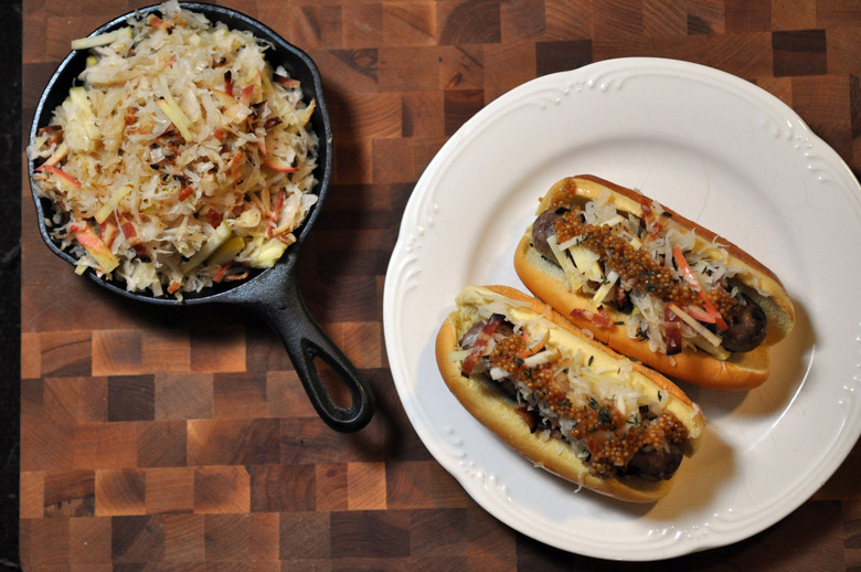 In some ways the bratwurst that you expect at almost any All-American tailgate is already perfection. Meat, bun, sauerkraut, mustard all working together to bring happiness to grilling gourmands everywhere.