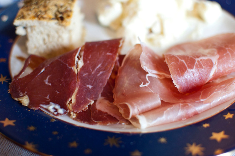 Prosciutto is a natural first choice here — sliced thick or thin, if you pile it on in layers it's going to resist a little unless you're some kind of hyena mutt with genetically enhanced jaws. That sounds terrifying, actually. Or useful, depending on the sandwich at hand. I bet one of those could take down a Dagwood in like, 8 seconds.
