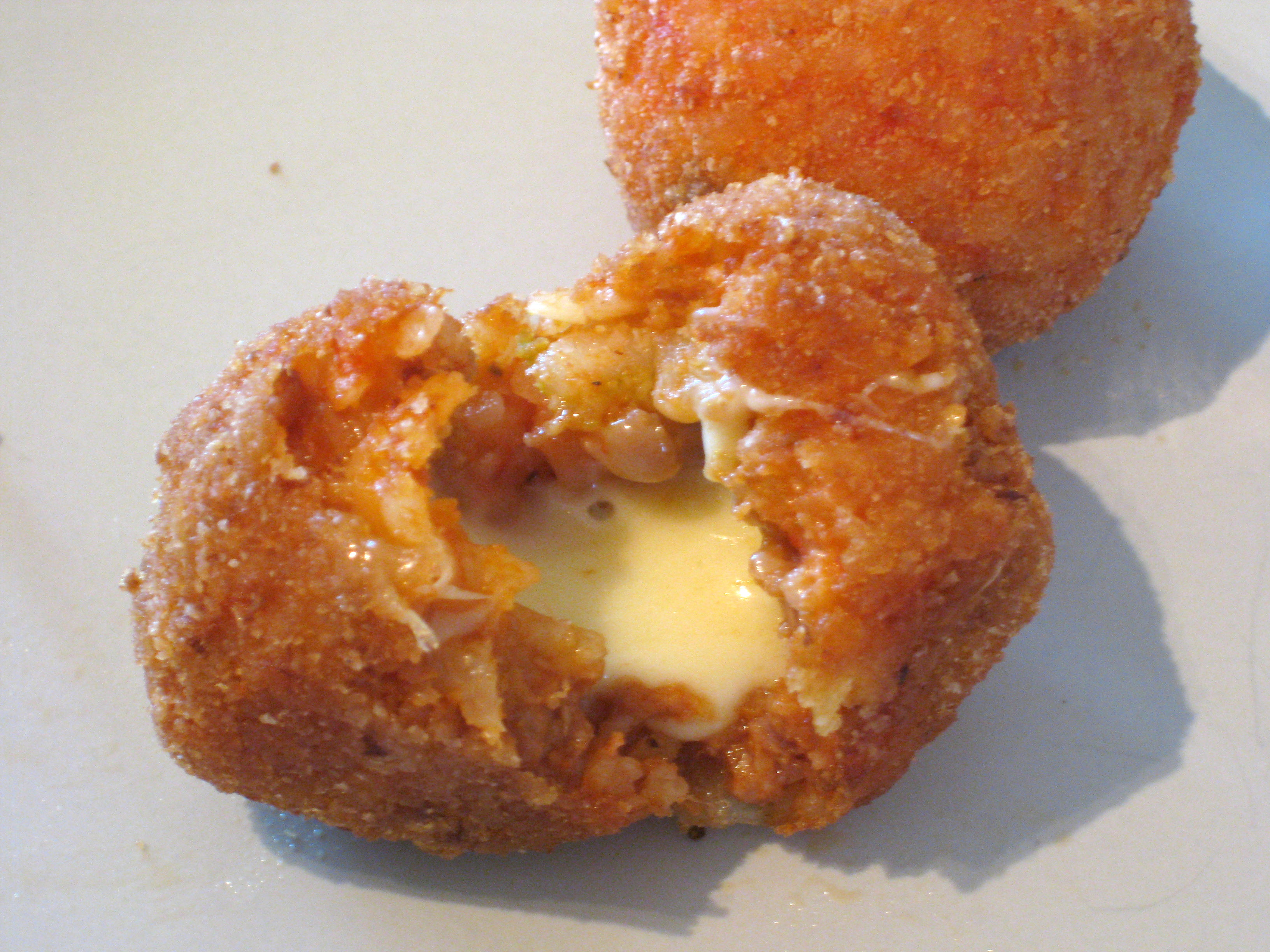 Arancini – Deep fried risotto balls oozing with melted cheese and buttery mushrooms.
