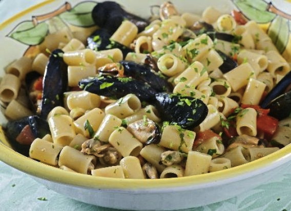 Tubettoni con cozze – Housemade pasta with mussels, cherry tomatoes and parsley.