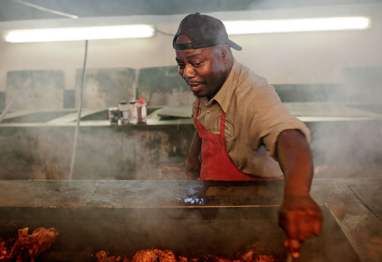 The skin of a pig serves as the vessel that contains all this water during a low, slow smoking. Brown prefers a smaller hog in the 90-100 lb. range to maximize tenderness and ease of handling. He also likes his pigs to be finished on roots and acorns instead of grain, because otherwise your barbecue will taste like...well...grain. The goal is to maximize tastiness, tenderness and juiciness, which Brown referred to as the "Three T's" since nobody has yet called him out on the fact that it's not "tuiciness." Far be it from me to question one of my favorite cooking gurus.
