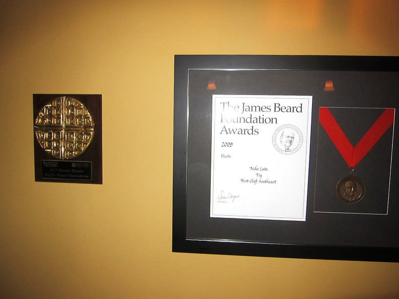 In a stressful, complicated 10-minute cookoff, Lata emerged victorious with perfect scores from all the judges for his breakfast presentation. The odds-on favorite thanks to his reputation for obsessive attention to detail in his restaurants, Lata was clearly proud of his accomplishment. By the time the chefs and guests arrived for the unofficial Festival after-party at FIG Saturday night, his Golden Waffle Award was hanging on the dining room wall, right next to his Beard Award. A Master Blaster, indeed.