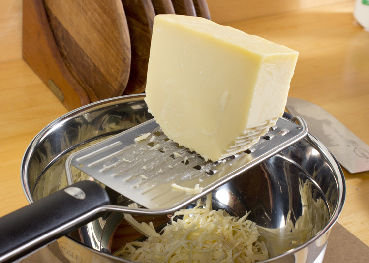 You know that cooking spray with the inexplicably greasy cap (even though you've never gotten the spray on the cap)? Give the grater, or better yet Microplane, a quick spritz, not heavy at all, then grate away and watch those velvety curls fall right into the bowl. A quick tap will quickly release any stragglers and the whole apparatus washes clean without mashing leftover cheese shreds into the blades. Here are a few recipes to test out this time-tested trick: