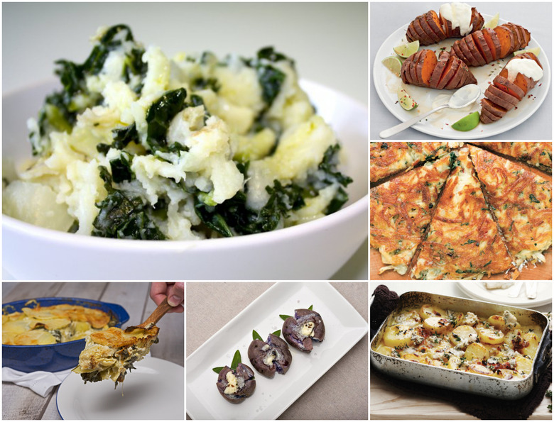 We've gathered our 8 most appropriate Thanksgiving potato recipes for you to practice on a great steak or other pre-bird entreé. They're simple and to the point, with just a smattering of potatoes' favorite accents, like goat cheese, bacon and sage.