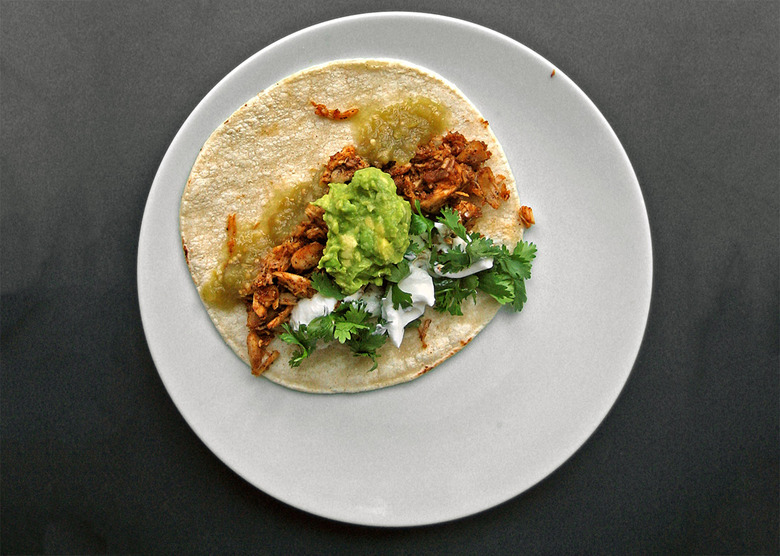 The taco is our household's favorite way of using up leftovers: any little bit of last night's protein (be it fish, chicken, pork, beef) can be chopped up, seasoned in a vaguely Mexican manner, and then served with fresh chopped cilantro, red onion, salsa, and a squeeze of lime. The trick is to chop the meat finely, season it well, and then fry it over high heat in copious amounts of olive oil to give it a richness and crispness that allows a little meat to go a long way.