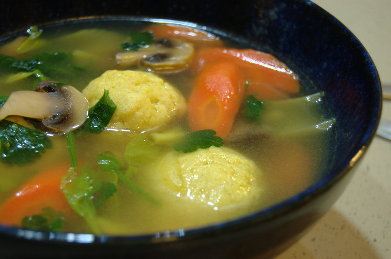 GM Nate was nice enough to offer to share his family matzo ball soup recipe, but when he asked his mom for it he was surprised to hear that her secret family recipe actually came from a cookbook. We took what she adapted from the 1949 cookbook Jewish Cookery by Leah W. Leonard, and made it Food Republic-friendly. Feel free to use this as a start and put your own spin on it for your signature matzo ball soup.
